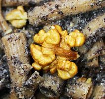 Wypłukany mak sparzyć wrzątkiem, trzykrotnie zemleć. W rondlu stopić miód, dodać mak, bakalie, chwilę smażyć. Zagnieść elastyczne makaronowe ciasto, rozwałkować, przesypać mąką, zostawić do lekkiego przeschnięcia. Następnie pokroić na niewielkie kwadraciki, ugotować w osolonym wrzątku, osączyć i wymieszać z masą makową.