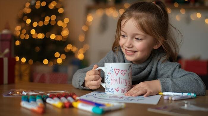 To kolejny pomysł DIY, który jest niezwykle prosty i efektowny. Własnoręcznie ozdobiony kubek wręczony bliskim z okazji świąt to piękny i bardzo osobisty podarunek. Do dekorowania potrzebne będą specjalne pisaki do malowania na ceramice. Możemy nimi ozdobić z dzieckiem nie tylko kubek, lecz także talerzyk czy miseczkę. Najlepiej wybrać białe naczynie lub na tyle jasne, by narysowane wzory były dobrze widoczne. Dziecko może udekorować kubek samodzielnie albo możecie zrobić to wspólnie, tworząc prosty świąteczny motyw.