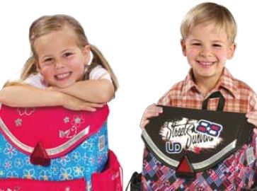 - ma szerokie, solidnie wciskane klamry zaopatrzone w światełka odblaskowe, które zapewniają dziecku bezpieczeństwo na drodze